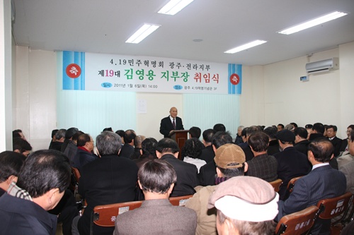 | | ▲ 취임사에 나선 김영용 제19대 지부장 - 김영용 신임 지부장은 4.19문화원 설립과 4.19혁명기념관건립, 호남4.19혁명30년사 등을 편찬하는데 기영한 공로가 크다. ⓒ 나환주 | | 4.19 민주혁명회 광주전라연합지부(지부장 : 김영용)는 7일 제19대 지부장 취임식을 갖고 4.19 관련 공식 업무에 들어갔다.