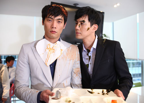 KBS 월화극 ‘동안미녀’(극본 오선형 정도윤, 연출 이진서 이소연)에서 남자주인공으로 출연하고 있는 최다니엘과 류진이 극중 앙숙으로 등장하는 설정과 달리 실제로는 둘도 없는 절친임을 증명하는 코믹 설정 샷을 선보여 눈길을 끌고 있다. 극중 두 사람은 의류회사 사장님(류진 분)과 말단 직원(최다니엘 분)으로 진절머리나는 악연관계다. 진욱(최다니엘 분)은 늘 승일(류진 분)에게 패션 감각을 지적당하고 언제 잘릴지 모르는 상황에 안절부절 못하는 상황. 승일 역시 진욱이 자신의 차를 긁어버리고 미역국을 얼굴에 투척하는 등 말썽을 부려 속이 쓰린 상태다. 뿐만 아니라 극이 진행될수록 여자주인공인 장나라, 김민서와 러브라인이 얽히고설켜 사랑의 라이벌이 될 예정. 1, 2회를 방송 후 시청자 게시판에는 “류진 역의 승일이 정말 차갑다. 저런 상사가 있으면 나라도 회사에 다니고 싶지 않을 것”, “최다니엘 역의 진욱은 구제불능 말썽쟁이다. 승일이 화가 날만 하다”라는 두 사람의 관계를 놓고 설전이 오가고 있을 정도. 하지만 이런 반응들과 달리 실제 두 사람은 촬영장에서 둘도 없는 절친사이다. 촬영장에서 최다니엘이 김칫국 세례를 받는 모습을 지켜본 류진은 최다니엘을 걱정하면서도 곧 다가올 자신의 미역국 투척신을 기대하라며 최다니엘을 위로했다는 후문. 그런가하면 류진은 미역국을 뒤집어쓴 상태에서 카메라를 들이대자 최다니엘과 함께 자연스럽게 코믹포즈를 취했다. 간간이 쉬는 시간에 두 사람은 서로의 모습을 보며 위안을 얻었다는 후문. |