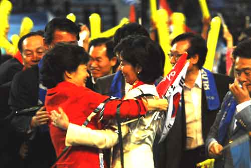 | | ▲ 2018년 동계올림픽도부들이 대거 참석, 축하연과 함께 응원전을 펼치고 있다. 박근혜 전 대표, 정몽준 전 대표, 나경원 의원, 남경필 의원, 이혜훈 의원, 구상찬 의원, 김동성 의원, 이학재 의원, 황우여 원내대표, 김동성 의원, 이한성 의원등 참석하고 있다 ⓒ 더타임즈 소찬호 | | 2018년 평창동계올림픽 개최지 발표를 앞두고 여야 당지도부들이 대거 참석, 축하연과 함께 응원전을 펼치고 있다. 박근혜 전 대표, 정몽준 전 대표, 나경원 의원, 남경필 의원, 이혜훈 의원, 구상찬 의원, 김동성 의원, 이학재 의원, 황우여 원내대표, 김동성 의원, 이한성 의원등 참석하고 있다. |