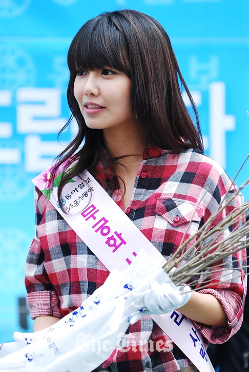 식목일 하루전인, 4일 낮 동아미디어 센터 앞에서 동아일보주최로 열린 "무궁화사랑 나라사랑" 행사에서 소녀시대 수영이 멤버 제시카, 서현과 함께 참석해 시민들에게 나무묘목을 나눠줬다. (더타임스 남윤형)