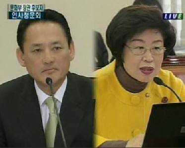 유 후보자는 오늘 국회에서 열린 인사 청문회에서 "열악한 연극 배우들의 복지를 위해 사재를 출연할 의향이 있느냐"는 손봉숙 통합민주당 의원의 질문에 "그럴 의향이 있다"고 답했다. 손 의원은 "140억 원의 재산은 국민정서에는 맞지 않는 많은 금액"이라며 사재를 출연할 의향이 있냐고 물었고, 유 후보자는 "연기자로서 연극배우들의 어려움을 잘 알고 있으며 음으로 양으로 도와왔다"고 말했다. 손봉숙 의원은 연극 배우들의 복지향상을 위해 쓰이는지 지켜 보겠다"고 말했다. 유 후보자는 또 "장관보다는 연기자로 돌아가는 게 어떻겠느냐"는 질문에 "기회가 되면 돌아가겠다"고 답했다. |