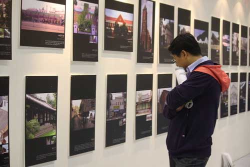 - "제8회 광주건축・도시문화제"에 참석한 관람객이 건축사진 작품을 보고 있다.