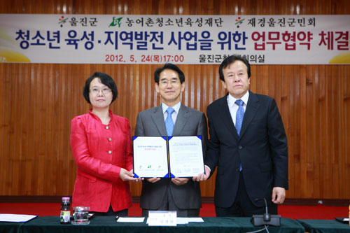 이번 협약을 위해 농어촌청소년육성재단의 관련 유관단체인 동북아(중국,러시아,일본)평화연대 대표, 와이즈포스트컨설팅 대표 등 방문단 16명은 1박2일간 울진에 체류하면서 주요 관광지를 둘러보고 사업 추진에 따른 의견교환을 함으로써 지속적으로 관련 사업에 대한 자문과 지원역할을 수행해 나가기로 했다. 주민소득 증대와 지역발전을 위해 농산어촌 체험관광사업과, 환동해권 국제교류사업, 울진지역 학생들의 승마체험활동 등 울진군 청소년의 육성과 지역발전에 필요한 사업 개발을 위해 공동 추진하는 내용으로 구성된 이번 협약으로 울진지역 청소년들이 스스로 행복을 가꾸며 살아갈 수 있는 여건 제공과 지역발전을 위한 기틀을 다질 것으로 기대한다고 군 관계자는 밝혔다. 또한 지방자치단체와 업무협약은 울진군이 9번째라고 밝힌 재단 관계자는 농어촌지역 발전사업 시행과 관련한 지자체 협약체결은 울진군이 처음이며 농어촌청소년 육성과 지역발전사업 시행에 새로운 거버넌스 모델을 정립하여 확산시킬 것이라고 말했다. 재경울진군민회도 고향의 발전과 후배 학생들의 올바른 성장을 위한 사업 시행에 최대한 협력하고 회원의 의견을 수렴하여 지역발전 사업추진에 적극적으로 지원하겠다고 밝혔다. 농어촌청소년 육성재단은 1994년 한국마사회와 문화관광부가 공동 출연하여 설립된 여성가족부 산하 비영리법인으로, 농어촌출신 대학생 장학사업, 영농・어업 종사자를 위한 국내외 연수사업, 농어촌청소년의 창의적 체험활동 및 국제 문화교류사업 등을 시행하고 있다. |