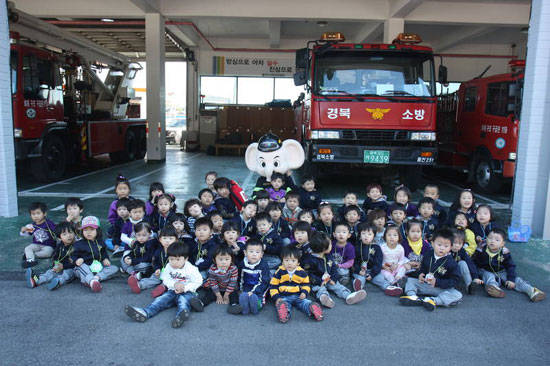 이날 소방안전교육은 어린이들을 대상으로 화재발생시 초기 대피요령 및 소방서에서 하는 일등을 소개하고, 구급차 탑승 및 물소화기 체험 등을 통해 아이들의 눈높이에 맞춘 체험 위주의 교육을 실시했다.
