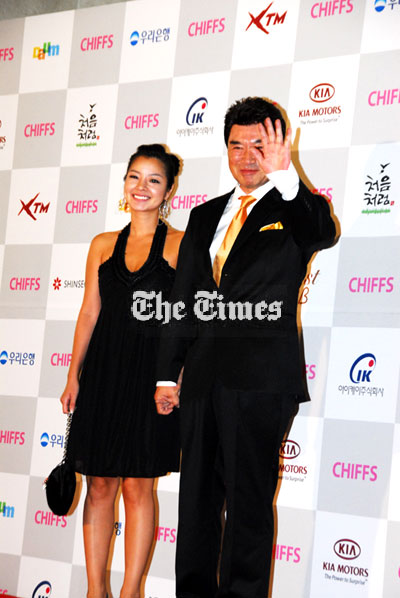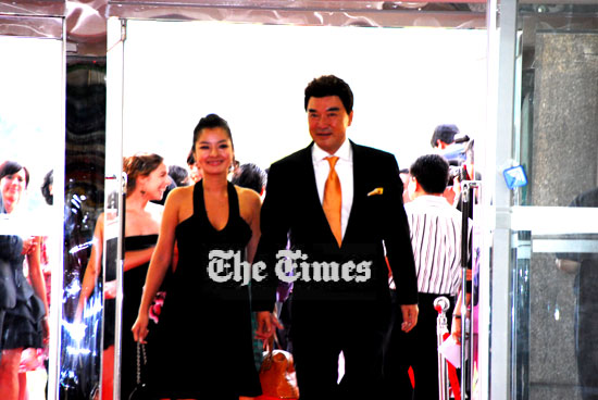 ▲ 3일 저녁 서울 국립극장 해오름극장에서 열린 "충무로국제영화제" 레드카펫 행사에서 이덕화 운영위원장이 자녀와 손잡고 첫 입장을 하고 있다.