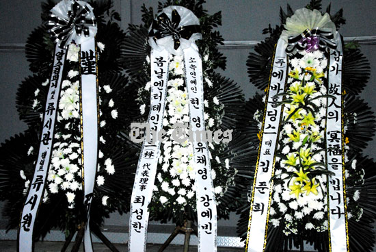 ▲ 태능 성심병원에 먼저 도착한 가수 류시원, 현영, 유채영,의 조화가 도착했으나 다시 강남성모병원으로 옴겨졌다.