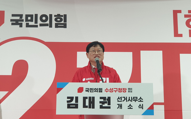 김대권 예비후보는 인사말에서 “선거법상 제한으로 간단히 말씀드린다”며 “수성구를 ‘사람이 찾아오는 목적지 도시’로 만들겠다”고 밝혔다.