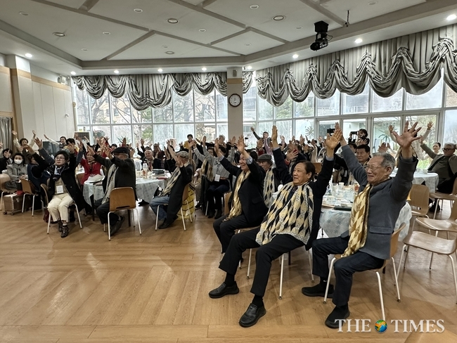 <즉석에서 배운 춤 동작으로 춤추며 흥겨워 하는 참가자들>