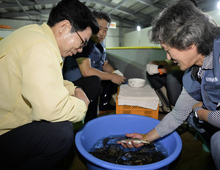 - 김광열 영덕군수황금은어 발안란 방류 사업 현장 - 영덕군은 대표적인 지역 명물인 황금은어의 고유한 유전적 특성과 개체수를 보존하기 위해 9월부터 12월까지 영덕황금은어종보존회와 함께 황금은어 발안란 방류 사업을 추진하고 있다. 발안란은 부화 직전 난막을 통해 눈이 보이게 되는 알을 일컫는데, 황금은어 발안란 방류 사업은 산란기가 도래한 자연산 황금은어를 포획해 알을 얻은 다음 황금은어 양식장 내에서 수정된 발안란을 다시 하천으로 방류하는 사업이다. 영덕군은 매년 지역의 군어(郡魚)이자 임금님께 진상한 유례 깊은 특산물인 황금은어의 개체수 증식을 통해 건강한 오십천 내수면 자원 확보에 힘써 왔다. 올해의 경우 1,000여 만립 생산해 약 300만립의 발안란을 오십천 등지에 방류하는 것을 목표로 하고 있으며, 나머지는 영덕황금은어 생태학습장에서 부화 후 내년 3~5월 내수면 자원 확보를 위해 관내 주요 하천에 치어를 방류하고, 일부는 영덕황금은어축제에 사용한다. 김광열 영덕군수는 “내수면 생태계와 영덕황금은어의 종을 보존해 지역 관광산업의 한 축이 될 수 있도록 노력을 기울이고 있다”며, “어족자원을 증식하고 불법 어업을 철저히 감시해 자연이 선물한 소중한