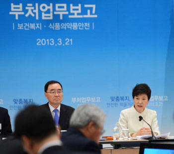 박근혜 대통령은 지난 21일 보건복지부와 식품의약품안전청으로부터 받은 첫 업무보고에서 기초연금과 관련해 "국민연금에 가입했건 안 했건 (기초연금은) 지금보다 더 드린다는 것을 더 쉽고 정확하게 국민에게 알려야 할 것"이라고 강조했다.