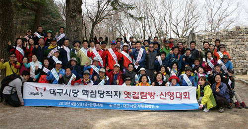 [ 더타임스 마태식 기자 ] 새누리당 대구시당 핵심당직자들은 4월 5일 식목일을 기념하여 경북 문경새재에서 선현들의 발자취를 더듬어 보는 옛길 탐방과 자연보호․산불조심 캠페인을 통해 당원결의를 다지는 산행대회를 가졌다.