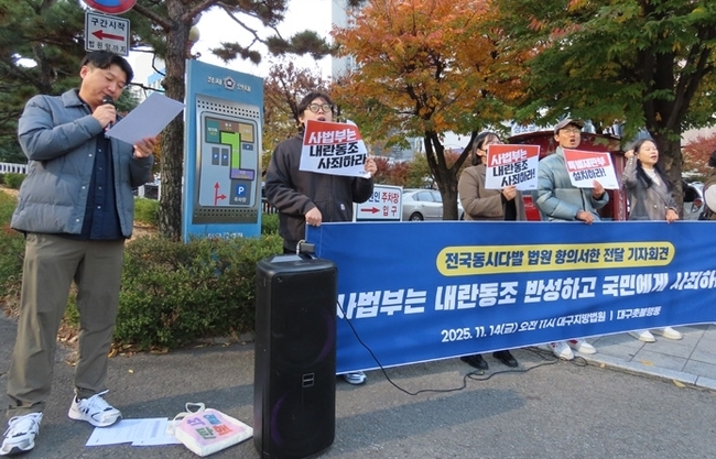대구촛불행동은 지귀연 판사 관련 의혹도 언급했다. 단체는 “접대 의혹을 받은 판사가 내란 사건을 전담하고 있다”며 “과거 피고를 시간 단위 계산으로 석방한 사례와 최근의 재판 태도를 보면 내란 세력에 특혜를 제공하고 있는 것”이라고 주장했다.