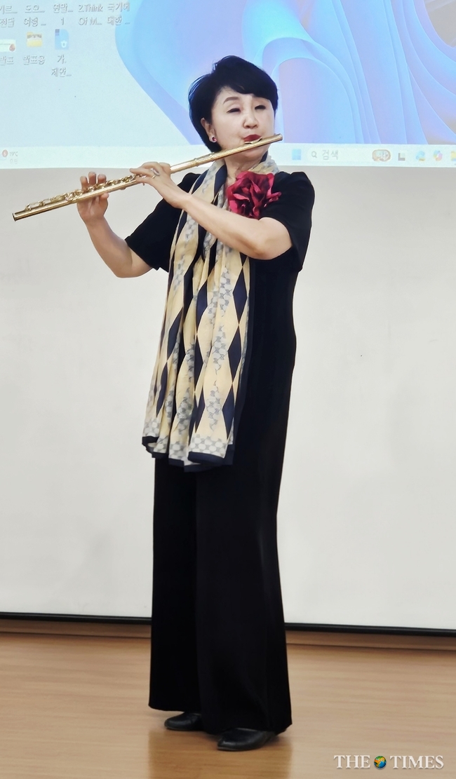 (식전 행사로 플룻을 연주하는 강영실 ICKC 이사 )