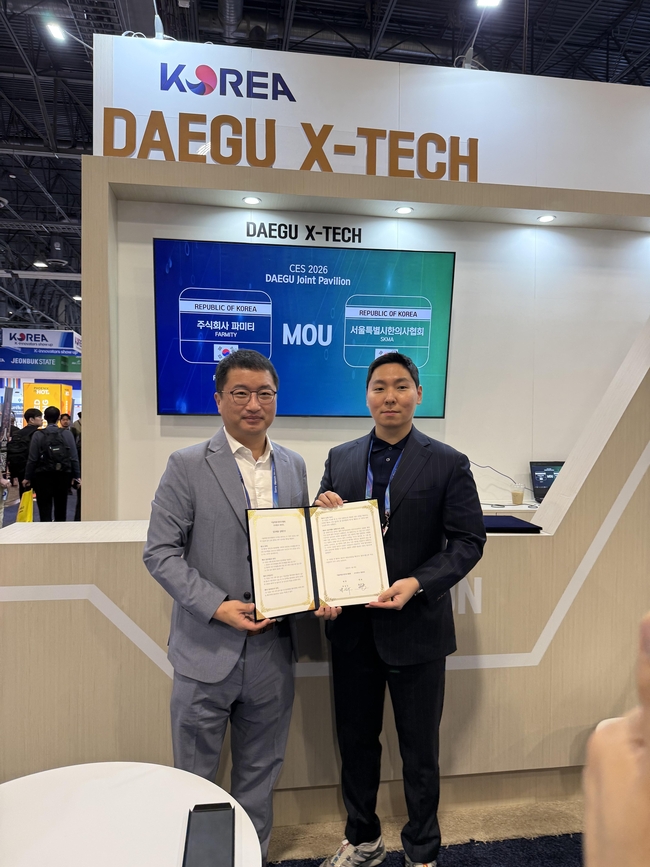 ㈜파미티 역시 CES 2026을 계기로 의료·돌봄 분야 현장 실증과 사업화 기반을 확대했다. 서울특별시 한의사협회와 업무협약을 체결해 한방병원 대상 실증 및 필드테스트를 추진하고, 융합의약기술산업협회와는 요양병원을 중심으로 한 돌봄 환경 실증에 나선다.