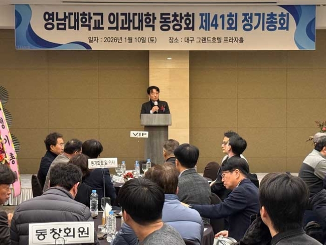 [ 더타임즈 마태식 기자 ] 영남대학교 의과대학 동창회는 10일 대구그랜드호텔에서 동문과 내외 귀빈 등 100여 명이 참석한 가운데 제41회 정기총회를 개최했다.