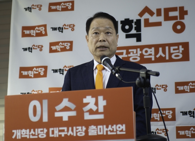 [ 더타임즈 마태식 기자 ] 개혁신당 이수찬 대구시장 예비후보가 11일 출마를 선언하며 “은퇴를 앞둔 정치인들의 놀이터가 된 대구정치를 끝내겠다”고 밝혔다. 그는 “지난 40년간 행정과 정치권력을 독점해온 이른바 엘리트들이 대구경제 침체의 책임을 지지 않은 채 다시 시민의 선택을 구하고 있다”며 “무능·무책임 정치에 대한 심판이 필요하다”고 주장했다.