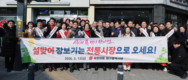 [ 더타임즈 마태식 기자 ] 국민의힘 대구광역시당이 설 명절을 앞두고 전통시장 활성화를 위한 장보기 행사를 진행했다. 이인선 대구시당위원장은 13일 오전 11시 수성시장, 오후 2시 목련시장을 잇따라 방문해 대구시당 핵심 당직자 80여 명과 함께 설맞이 전통시장 장보기 행사를 개최했다.