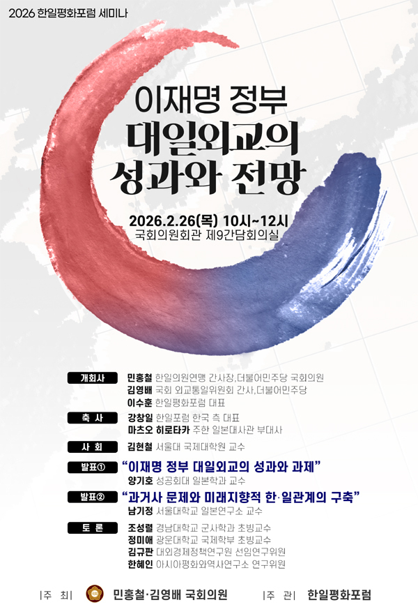 한일평화포럼 대표 이수훈은 “이재명 정부의 국익 중심 실용외교는 불안정한 국제질서 속에서 협력적 한일관계를 구축하기 위한 균형 잡힌 접근을 이어가고 있다”며 “과거를 직시하되 미래지향적 협력의 틀을 함께 고민하는 의미 있는 논의가 이뤄졌다”고 말했다.