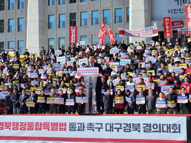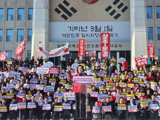 특히 이인선 국민의힘 대구시당위원장과 구자근 경북도당위원장은 규탄사를 통해 “국회가 지역민의 절박한 목소리에 응답해 대구경북행정통합특별법을 조속히 통과시켜야 한다”고 강조했다.