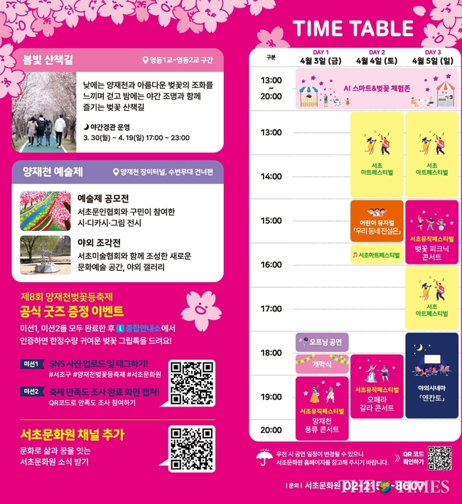 3일부터 5일 까지 양재천에서 제8회 양재천 벚꽃 등 축제가 있었다.