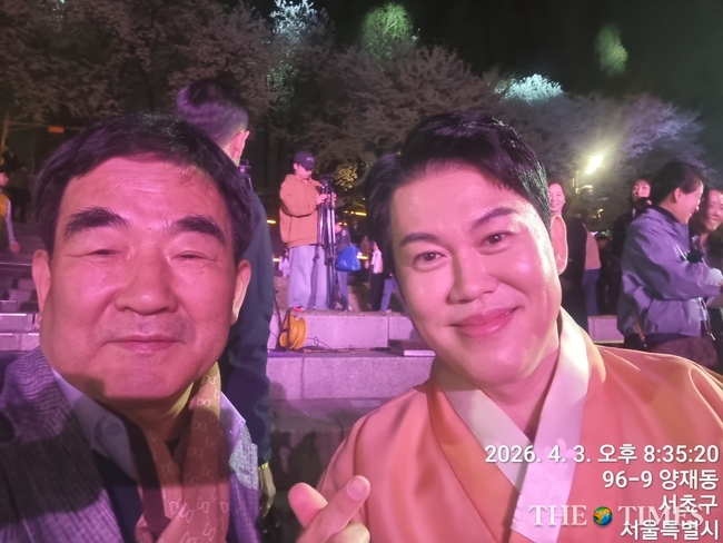 (기자도 이 행복한 행사에 일원이 되고 싶어 남상일 국악인과 사진 한 컷 찍었다.)