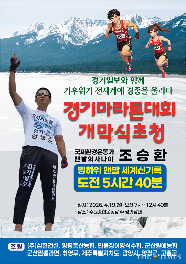 - 4월 19일 수원종합운동장, ‘경기일보 마라톤’ 개막식서 빙하 위 사투