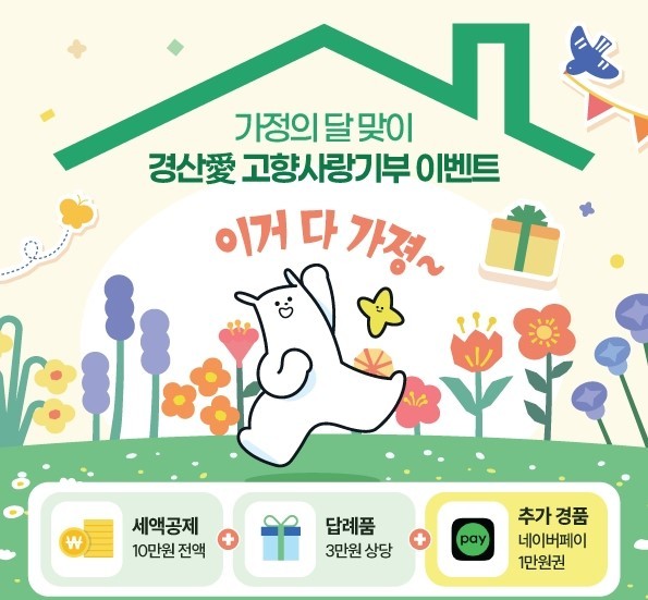 경산시는 5월 가정의 달을 맞아 ‘경산愛 고향사랑기부 이벤트’를 5월 1일부터 31일까지 한 달간 실시한다.