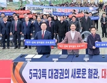 [ 더타임즈 마태식 기자 ] 대구광역시와 경상북도를 비롯한 대구·경북 6개 지자체장이 ‘대구~경북 광역철도’의 예비타당성조사(예타) 조속 통과를 촉구하는 공동 건의문에 서명했다. 대구시는 2월 27일 오후 2시 북삼역에서 열리는 대경선 북삼역 개통식에 앞서 ‘대구~경북 광역철도 공동 건의문’ 서명식을 개최했다. 이번 서명식은 현재 예비타당성조사가 진행 중인 대구~경북 광역철도의 신속한 추진을 위해 관계 지자체가 공동의 정책 의지를 대외적으로 표명하고, 중앙정부에 예타 통과와 조기 착공을 공식 건의하기 위해 마련됐다. 대구~경북 광역철도는 대구 도심과 대구경북 민·군 통합공항을 연결하고, 대구와 경북을 남북으로 잇는 핵심 광역교통 인프라다. 대구시와 경북 주요 도시를 환승 없이 연결해 광역생활권을 형성하고, 대구·경북 메가시티 기반을 구축할 중추적 사업으로 평가받고 있다. 최근 대경선·중앙선·동해선이 잇따라 개통되면서 대구·경북은 철도 중심 교통체계로 빠르게 전환하고 있다. 이러한 흐름 속에서 대구~경북 광역철도는 기존 철도 노선과의 연계를 통해 남북 교통축을 보완하고, 지역 간 이동성과 연결성을 한층 강화할 것으로 기대된다. 특히 이번 사업은 정부의 ‘5극3
