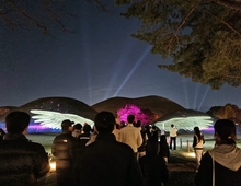 - 고분에 투사된 미디어아트 영상 - 경주시는 지난달 24일부터 지난16일까지 24일간 대릉원 일원에서 열린 ‘2025 국가유산 미디어아트 경주 대릉원’ 행사가 성료됐다. 올해 행사는 ‘대릉원 몽화, 천년의 문이 열리다’를 주제로 천년 신라의 역사와 현대 미디어 기술을 결합한 야간 문화예술 콘텐츠를 선보였다. 행사 기간 총 60만여 명이 방문했으며, 이 중 5만여 명이 외국인 관광객으로 집계돼 높은 관심을 보였고, 이번 행사가 경주의 대표 야간 관광 프로그램으로 자리매김하며 지역 관광 활성화에 실질적 성과를 거뒀다고 설명했다. 개막식에서는 신라 고취대의 퍼포먼스로 시작해 전통 요소를 현대적으로 재해석한 ‘생동감크루’ 공연이 이어지며 분위기를 이끌었으며, 행사 기간 천마총이 무료 개방돼 고분군과 미디어아트가 결합된 특별한 야간 체험을 즐기려는 시민과 관광객들의 발길이 이어졌다. 황남대총·천마총·90호 고분 등 대릉원 전역에 설치된 미디어파사드와 인터랙티브 콘텐츠는 신라의 상징과 역사를 현대적으로 구현해 높은 몰입감을 제공했다. 관람객 얼굴을 신라 왕·왕비 복식과 합성하는 체험, 스탬프 투어, 종이등 만들기 등 가족·연인 참여형 프로그램도 높은 참여율을 기록했다
