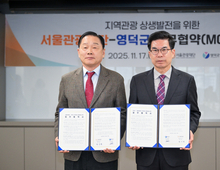 서울관광재단 김기연 대표이사, 김광열 영덕군수 영덕군은 서울관광재단과의 협력·교류를 강화하고 지역 관광산업의 지속 가능한 발전과 성장을 함께 도모하기 위해 지난 17일 서울관광플라자 7층 대회의실에서 ‘지역관광 상생발전을 위한 업무협약’을 체결했다. 이번 협약식에는 김광열 영덕군수와 서울관광재단 김기연 대표이사를 비롯한 관계자 20여 명이 참석했으며, 두 단체는 상호 협력을 바탕으로 한 지속 가능한 지역 관광산업의 발전과 관광교류 활성화를 위해 손을 맞잡았다. 이에 두 단체 앞으로 △관광 정보교류 및 네트워크 구축 △국내외 관광객 대상 상호 관광 홍보 협력 사업 운영 등을 주요 내용으로 지역관광 활성화를 위한 협력 체계를 구축할 예정이다. 특히 이날 협약에는 영덕대게축제, 물가자미축제, 황금은어축제 등 영덕군의 대표적인 축제와 해양·미식 관광의 우수성을 글로벌 차원에서 홍보해 국내외 관광객을 유치하기 위한 협력 방안이 중점적으로 다루어졌다. 영덕군은 최근 동해 중부선 철도와 포항-영덕 고속도로가 개통되는 등 교통 접근성이 대폭 향상됨에 따라 이번 협약을 기회로 수도권 관광객을 유치하기 위한 관광 전략을 적극적으로 펼쳐 나갈 방침이다. 김광열 영덕군수는 “이번