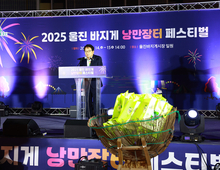 - 손병복 울진군수 - 울진군은 지난 11월 14일부터 15일까지 울진바지게시장 일원에서‘2025 울진바지게 낭만장터 페스티벌’개최했다. 지역 전통시장에 활력을 불어넣기 위해 개최한 이번 행사는 가족 단위 방문객이 함께 즐길 수 있는 공연과 체험, 야시장 등 다양한 볼거리·먹거리로 구성되어 전통시장을 찾는 손님들에게 색다른 즐거움을 제공했다. 이번 페스티벌은 관람형 행사뿐 아니라 직접 참여할 수 있는 체험 프로그램이 강화된 것이 특징이다.‘우리가족 행복한 케이크 만들기’,‘떡메치기 체험 등 가족이 함께 즐기는 다양한 체험행사를 통해 큰 호응을 얻었다. 축제 첫날인 14일에는 오후 6시 개막식을 시작으로 울진 지역 예술인 버스킹 공연을 비롯해 클라운 마임, 가수 공연이 펼쳐져 시장 일대를 축제 분위기로 물들였다. 둘째 날에는 어린이 명랑경기, 빅벌룬쇼 등 어린이 중심 프로그램이 확대 운영되었으며, 어쿠스틱 밴드 애플트리, DJ 로빈의 EDM 무대가 이어져 신나는 축제의 대미를 장식했다. 또한, 축제 기간 동안 시장 상인회가 직접 참여하는 야시장 매대와 특가 장터가 운영되었으며, 야시장 이용객을 대상으로 바지게 막걸리(300㎖) 무료 제공 이벤트를 진행했고, 야