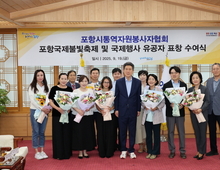 이강덕 포항시장은 다양한 국제행사에서 헌신적으로 활동한 포항시통역자원봉사자협회 소속 봉사자 10명에게 19일 시장 표창을 수여했다. 이번 표창은 여러 국제행사에서 언어 장벽을 넘어 원활한 의사소통을 지원하고, 행사 운영과 해외 방문단의 편의를 위해 적극적으로 봉사한 자원봉사자들의 노고를 인정한 것이다. 이 시장은 “통역자원봉사자들의 헌신과 적극적인 참여가 국제행사의 성공적 개최에 큰 힘이 되고 있다”며, “앞으로도 글로벌 도시 포항의 위상 제고와 국제교류 확대에 중요한 역할을 해주기를 기대한다”고 감사와 격려를 전했다. 표창을 받은 일본어권 봉사자 박선지 씨는 “포항을 찾은 외국인들이 편안하게 지낼 수 있도록 돕는 과정이 보람찼다”며 “앞으로도 국제행사에서 통역봉사자로서 역할을 다하겠다”고 소감을 밝혔다. 이상석 포항시통역자원봉사자협회 총괄회장은 “회원들의 열정과 헌신이 이렇게 인정받게 되어 매우 뜻깊다”며 “협회 역시 포항시와 함께 지속적으로 역량을 강화해 국제행사에 힘을 보태겠다”고 했다. 한편 1995년 창립된 포항시통역자원봉사자협회는 영어·일본어·중국어·베트남어 등 4개 언어권 133명으로 구성돼 있으며, 글로벌 행사마다 지역을 대표하는 소통의 다리