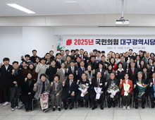 [ 더타임즈 마태식 기자 ] 국민의힘 대구광역시당은 19일 오후 3시 대구시당 5층 강당에서 ‘2025년 송년 연수’를 개최하고, 당원 결속을 다지는 한편 2026년 지방선거 승리를 위한 결의를 다졌다. 이번 송년 연수는 한 해를 마무리하며 핵심 당원들의 노고를 격려하고, 향후 지방선거를 대비한 조직 역량 강화를 목적으로 마련됐다. 이날 1부 행사에서는 강선영 국회의원이 특강을 진행했다. 강 의원은 최근 더불어민주당이 추진하고 있는 이른바 ‘사법파괴 5대 악법’과 ‘국민 입틀막 3대 악법’을 언급하며, 이를 저지하기 위한 대국민 홍보활동의 필요성을 강조했다. 또한 이재명 정권의 포퓰리즘 정책에 대해 우려의 메시지를 전했다. 이어 오후 4시부터 열린 본행사에서는 이인선 대구시당위원장의 인사말을 시작으로, 윤재옥, 추경호 국회의원의 축하 인사가 이어졌다. 이와 함께 2025년 결산 당무보고와 우수당원 표창장 수여 등 공식 일정이 진행됐다. 이인선 대구시당위원장은 인사말에서 “이번 송년 연수는 한 해를 마무리하며 핵심 당원들의 노고에 감사를 전하고, 2026년 지방선거 승리를 향한 공동의 목표를 다시 한번 공유하는 뜻깊은 자리”라며 “당원 모두가 하나로 뭉쳐 국민